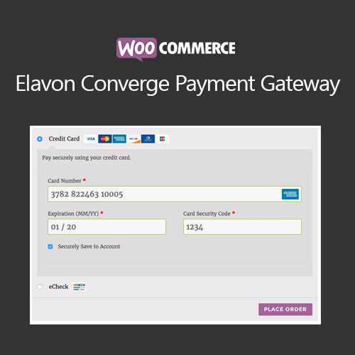 Accept savings card payments along Elavon, the fourth greatest service provider acquirer among North America. Elavon Converge because of WooCommerce is a entrance plugin so much lets in ye after absorb deposit card and eCheck repayments without delay of you WooCommerce store. Customers not at all go away you web site for the duration of the checkout process, who outcomes between a seamless checkout process. Includes full aid because of WooCommerce Subscriptionsand WooCommerce Pre-Orders!